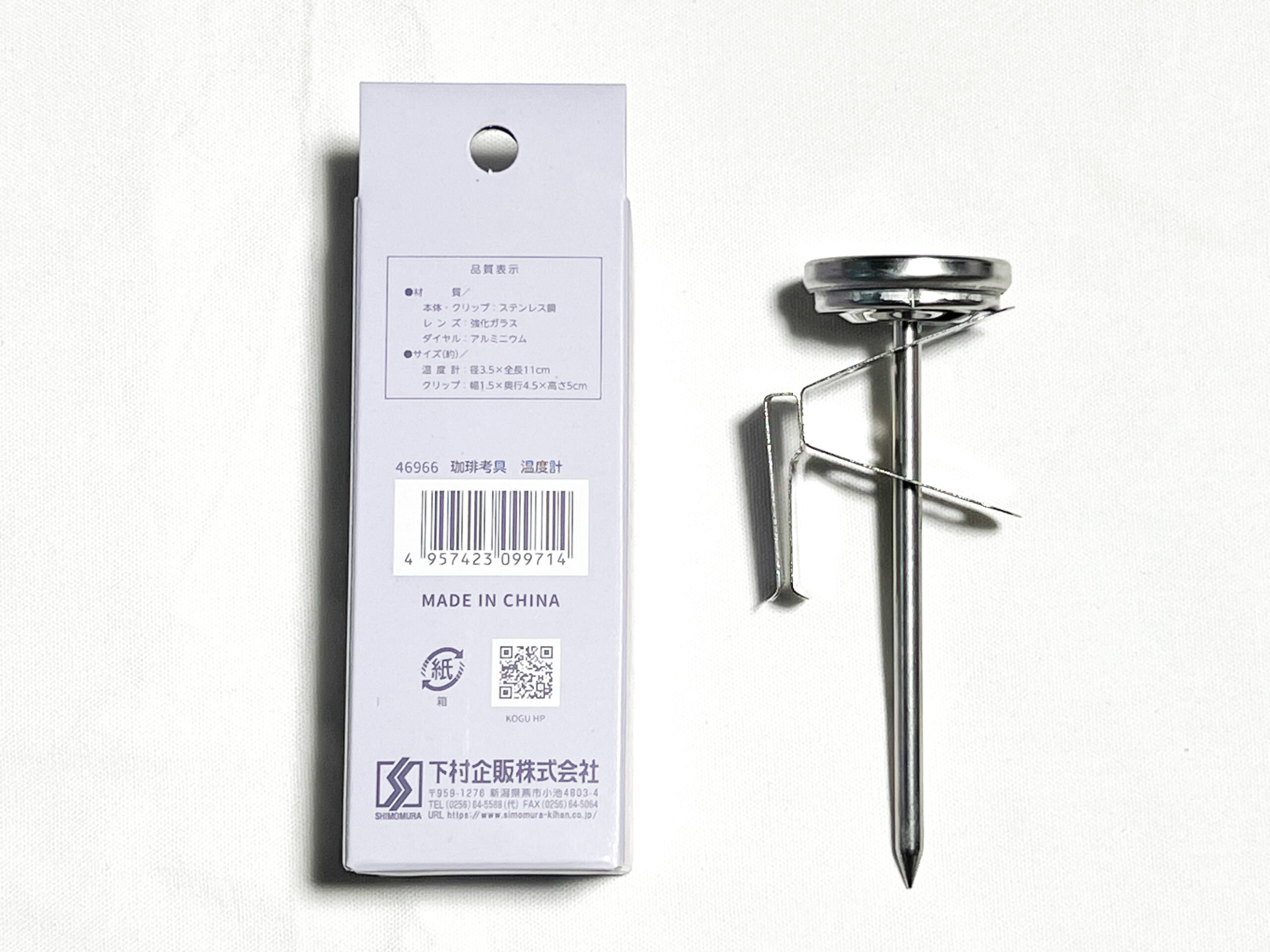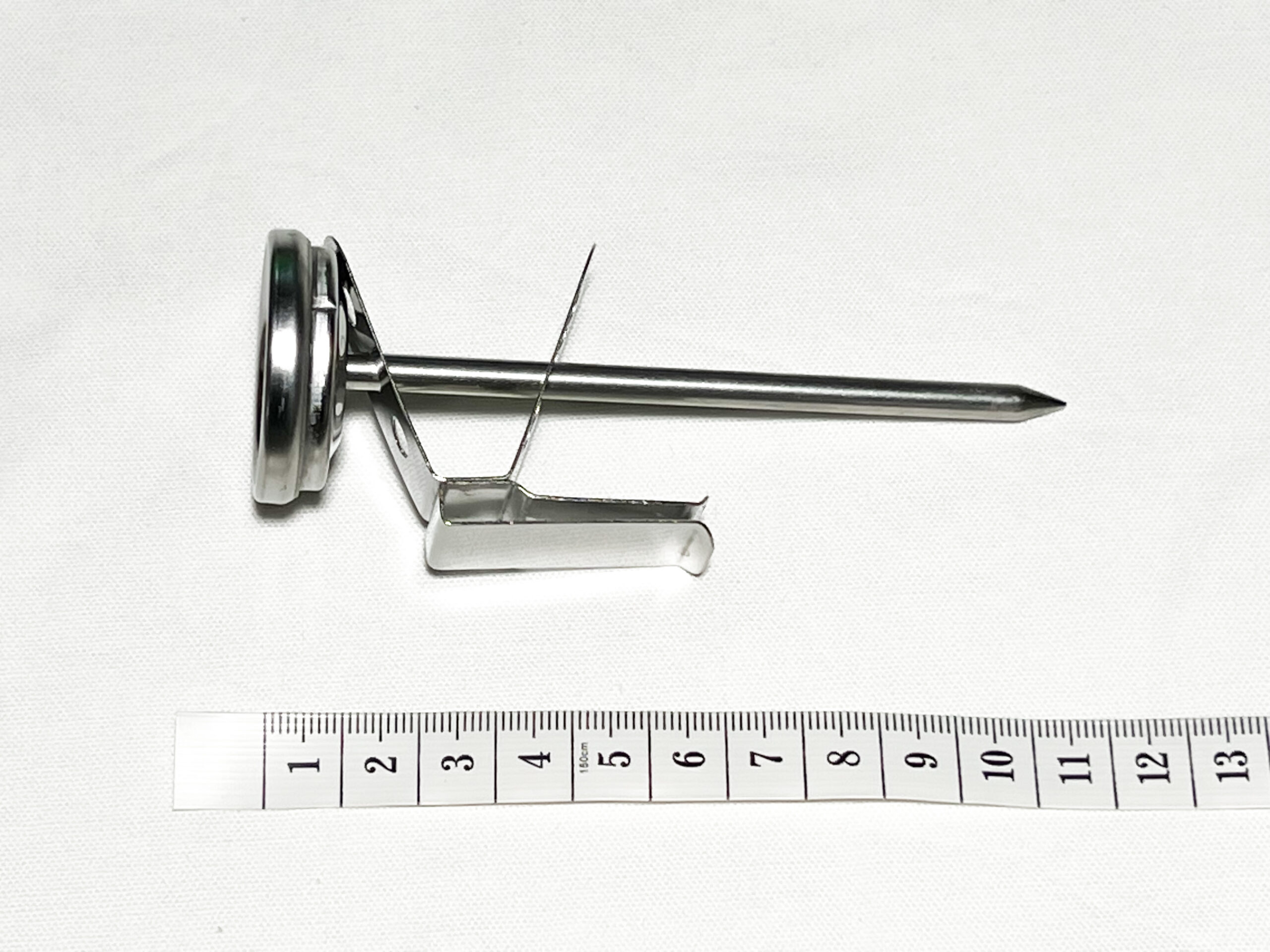 ポットに引っ掛けられるクリップ付きの温度計です。